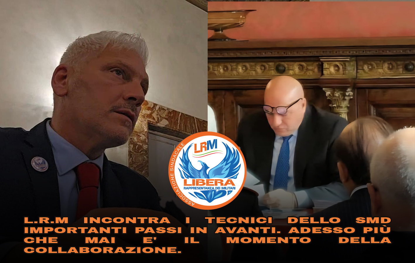 Questo è il momento della collaborazione ed è per questo motivo che il Sindacato L.R.M si è impegnato a condividere il documento programmatico con tutte le sigle rappresentative al fine di individuare una linea comune a beneficio del benessere di tutti i lavoratori che servono in armi.