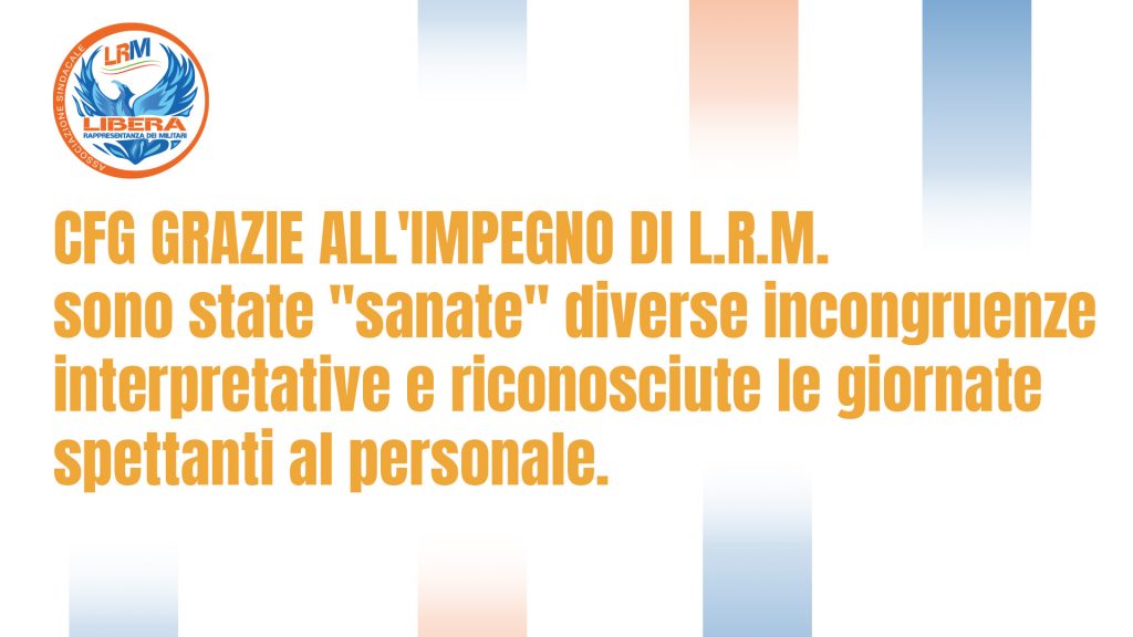 Grazie all’impegno di Libera Rappresentanza dei Militari sono state “sanate” diverse incongruenze interpretative e riconosciute le giornate spettanti al personale.